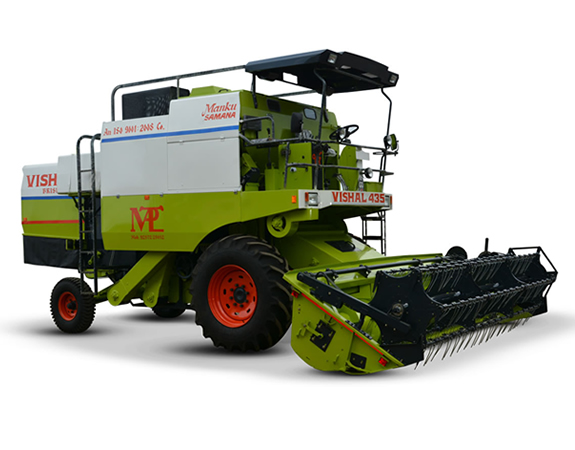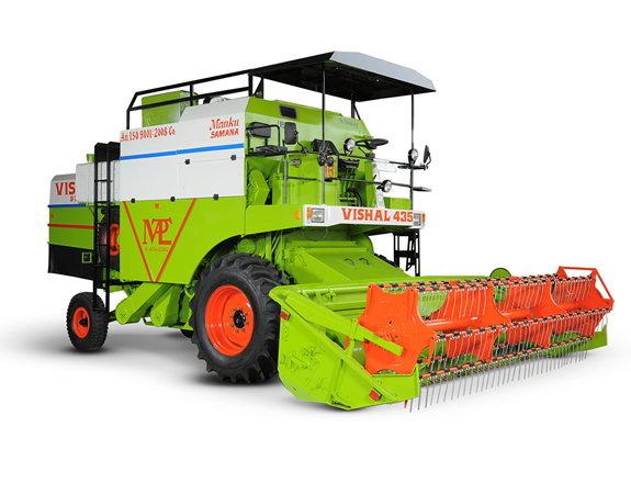 VISHAL 435 Brisk is self propelled combine harvester that harvests grain crops in three separate operations comprising harvesting, reaping, threshing and winnowing into a single process. Among the crops harvested with this combine harvester are wheat, oats, rye, barley, soybean, sunflower, grame and pulses. The waste straw left behind on the field is the remaining dried stems and leaves of the crop with limited nutrients which is either chopped and spread on the field or baled for feed and bedding for livestock. VISHAL Combine Harvesters are one of the most economically important labour and time saving harvesting machines, significantly reducing the fraction of the population that must be engaged in agriculture.